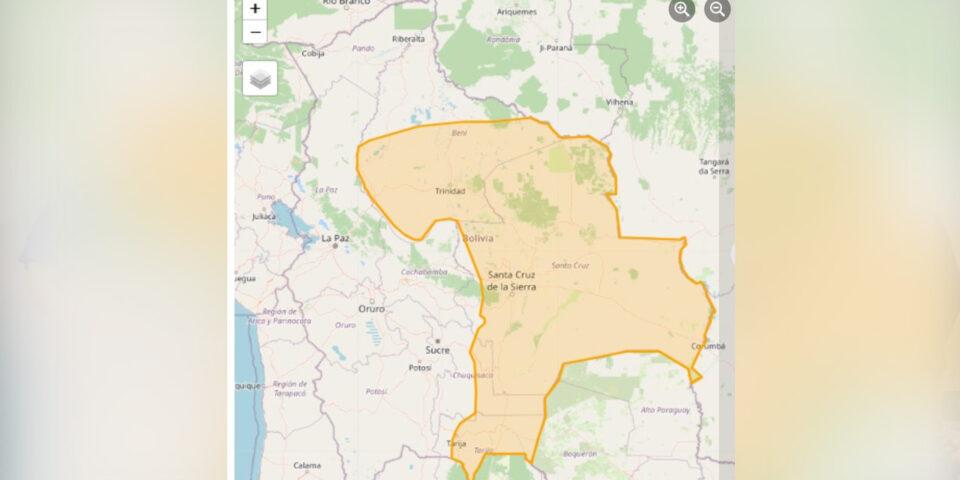 La alerta estará vigente en las provincias O’ Connor, Gran Chaco, Arce, Méndez y Cercado en Tarija; Luis Calvo, Hernando Siles, este de Tomina, sudeste de Belisario Boeto en Chuquisaca; Cercado, Marban, Moxos, Itenez y Mamoré, y sur de Yacuma y Ballivián en Beni.