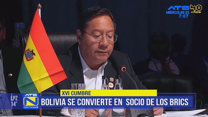 La Paz, 23 de oct 2024 (ATB Digital).- Bolivia se une a los BRICS, siendo el único país de América Latina en ingresar al grupo. El presidente Luis Arce viajó a Rusia para participar en la XVI Cumbre de los BRICS, donde se abordarán temas de seguridad, política, economía y contactos culturales, junto a mandatarios de más de 30 países.