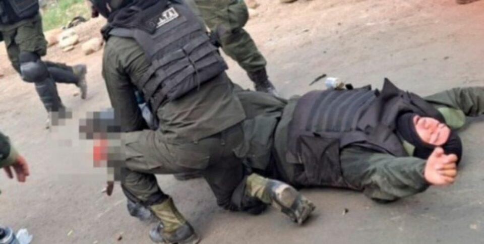 Fotografías que circulan en redes sociales muestran cómo la extremidad del efectivo policial cuelga mientras sus camaradas lo trasladan a un lugar seguro.