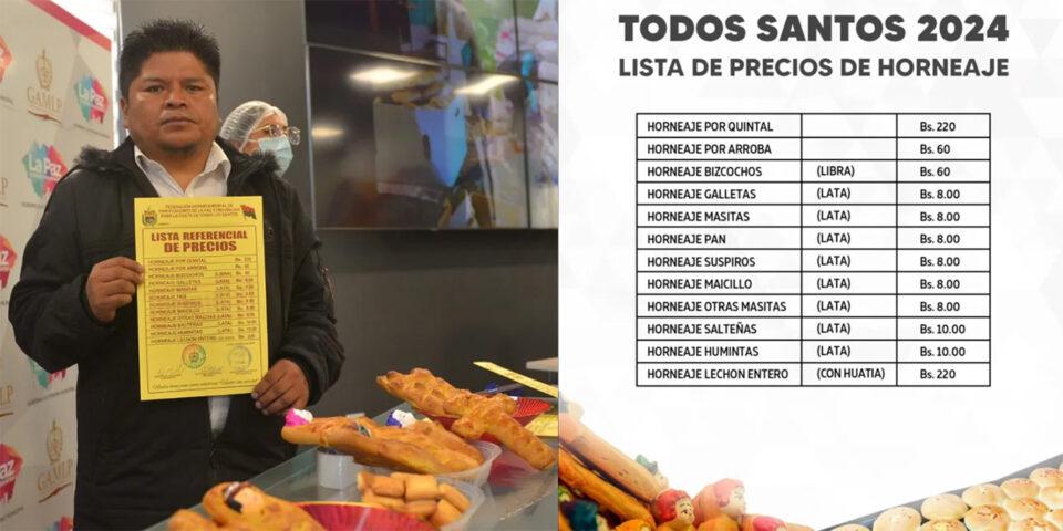 Limachi destacó que la lista de precios fue acordada entre la Federación de Panificadores y la Unidad de Defensa de los Derechos del Consumidor, con el fin de evitar cobros excesivos durante la festividad.