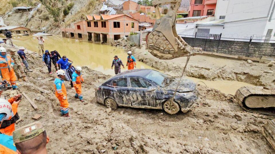 La Paz, 28 de nov 2024 (ATB Digital).- El pasado sábado 23 de noviembre, la joven Grissel Pacajes vivió la peor experiencia de su vida y por milagro no terminó en una tragedia. Mientras conducía su auto en la zona de Bajo Llojeta, en La Paz, una mazamorra arrastró por varios metros el vehículo que conducía. En un abrir y cerrar de ojos, la fuerza del agua con el lodo la empujó hasta chocar con una volqueta.