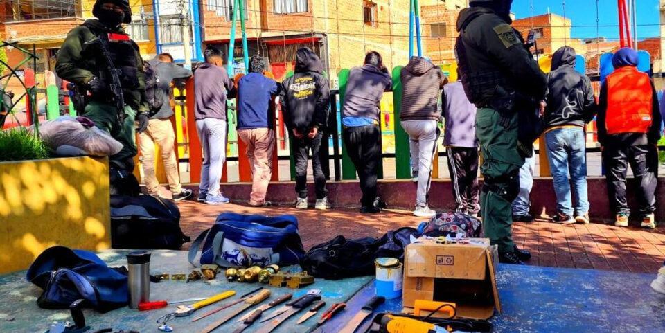 La Paz, 10 de dic 2024 (ATB Digital).- Efectivos de la Policía Boliviana realizaron intensos rastrillajes en la zona del Cementerio en la ciudad de La Paz y capturaron a 28 personas, entre hombres y mujeres, quienes estaban en posesión de armas punzocortantes e incluso machetes y taladros. Dos serán investigados por trata.