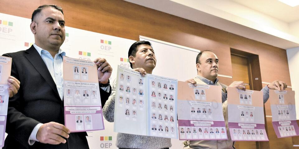 En consecuencia, sólo en Chuquisaca, La Paz, Oruro y Potosí se elegirán a las autoridades de las cuatro instancias: Consejo de la Magistratura, del Tribunal Agroambiental, del Tribunal Supremo de Justicia y del Tribunal Constitucional Plurinacional.