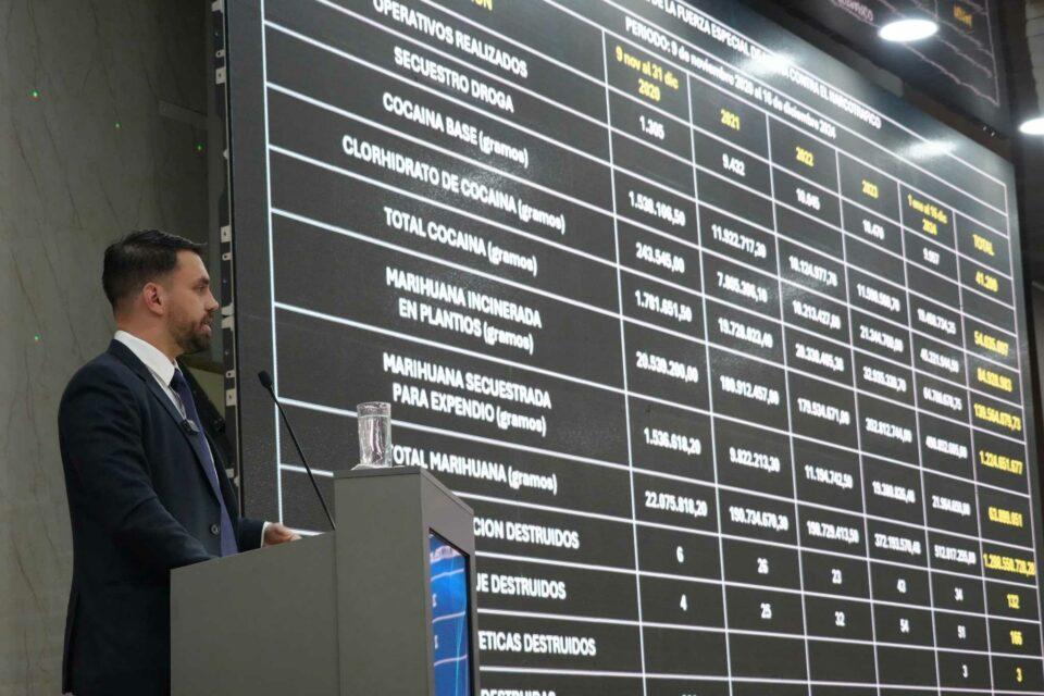 En más de cuatro años de gestión, el ministro también reportó que, como resultado de los operativos, se logró la aprehensión de 13.359 personas por delitos relacionados con el narcotráfico.