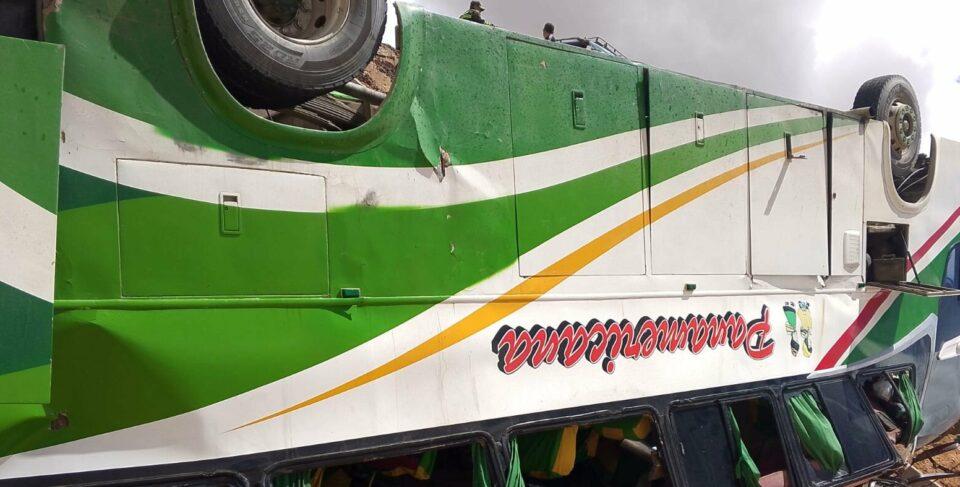 La Paz, 26 de ene 2025 (ATB Digital).- La Policía reportó que 19 personas fallecieron en el accidente de un bus de la empresa Panamericana que cumplía la ruta La Paz-Villazón. El motorizado volcó la madrugada de este domingo cerca del sector de Cerdas.