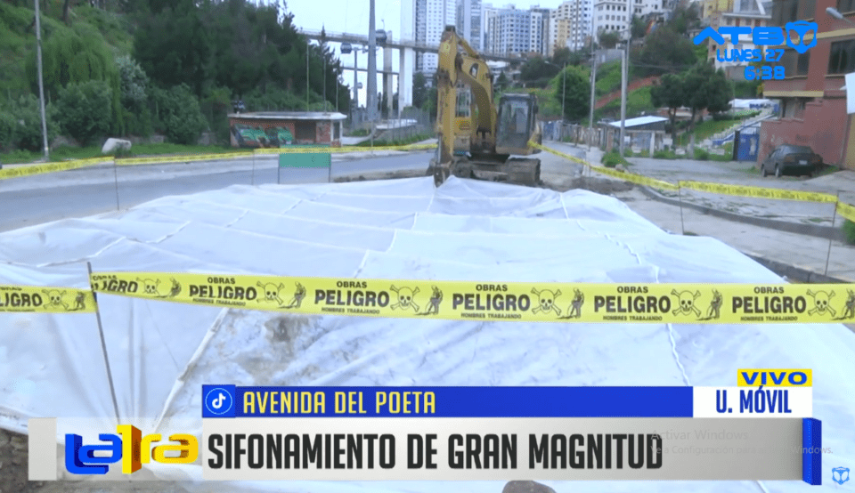 La Paz, 27 de enero 2025 (ATB Digital).- El sifonamiento registrado en la avenida del Poeta, en la ciudad de La Paz, obligó al cierre del tramo afectado en el carril de bajada hacia la zona Sur. Los vehículos que circulan por el sector deben tomar un desvío y recorrer el área en contrarruta. Ante esta emergencia, la alcaldía de la ciudad intervino cubriendo la zona afectada para evitar que las lluvias generen más destrozos en la vía.