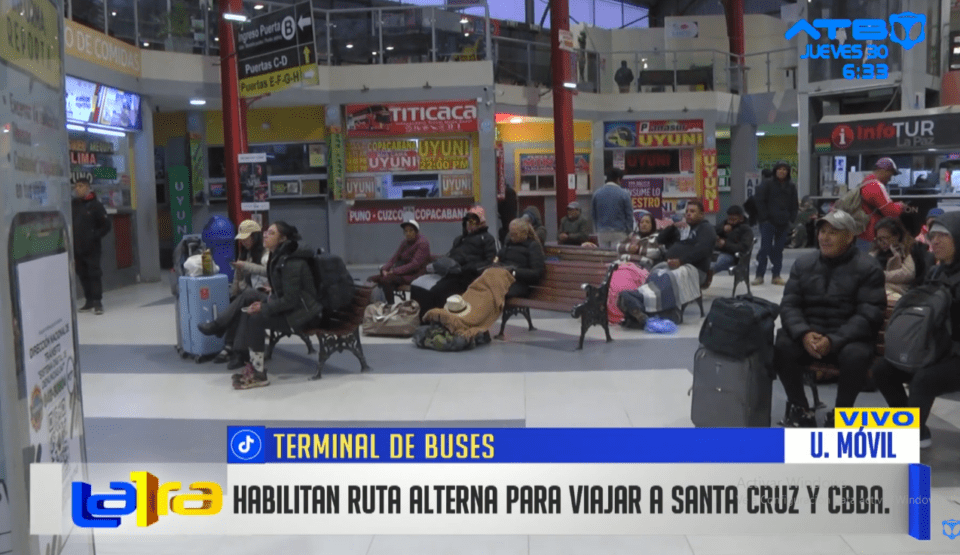 La Paz, 30 de enero 2025 (ATB Digital).- El responsable de Tránsito de la Terminal de Buses de La Paz informó que las empresas de transporte realizan salidas normales a Cochabamba y Santa Cruz tomando vías alternas por Santivañes, al persistir el bloqueo en Quillacollo. El oficial de Tránsito aseguró que las rutas, salvo el bloqueo en Quillacollo, se encuentran expeditas y que todas las flotas que viajaron ayer por la tarde retornaron esta mañana.