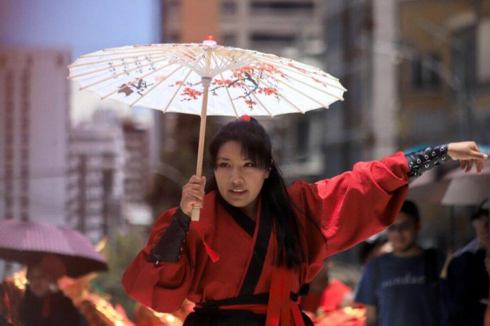 Luego alternaron distintas escuelas de artes marciales con demostraciones de sus estudiantes, incluidos varios niños, y también hubo bailes folclóricos bolivianos, entre ellos, la danza de los ‘ch’utas’, una tradición del carnaval andino, además de la interpretación de una canción china.