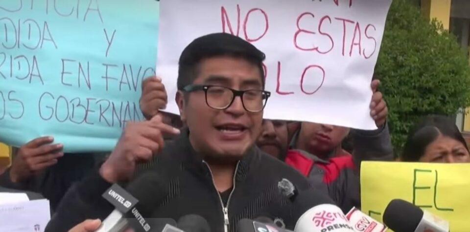 Veizaga lamentó que Mamani incumpla la detención domiciliaria. “No tenemos una sentencia. Pero el conseguir algo de justicia nos ha costado tres años, supuestamente el señor (Mamani) tendría que estar en su casa, sin embargo, esta mañana (del viernes) lo hemos visto paseando y dando conferencias de prensa. Entonces está desafiando a la Justicia y a la Policía”