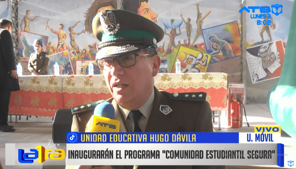 La Paz, 3 de febrero 2025 (ATB Digital).- En la unidad educativa Hugo Dávila, miembros de la Policía boliviana inauguraron el plan de seguridad “Comunidad Estudiantil Segura”. El coronel Omar Zegada informó que el objetivo de esta iniciativa es velar por la seguridad de los estudiantes y, a su vez, facilitar la circulación de vehículos, ya que debido al primer día de clases se han registrado congestiones vehiculares en las cercanías de los colegios. Al plan de trabajo se suman el cuerpo de Bomberos y la Fuerza Especial de Lucha Contra la Violencia (FELCV).