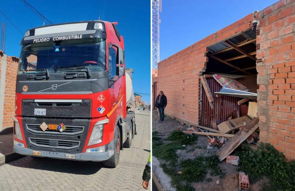 La Paz, 6 de febrero 2025 (ATB Digital).- En un incidente ocurrido en la ciudad de El Alto, un camión cisterna colisionó con una vivienda, ocasionando importantes daños materiales. Al llegar al lugar, los efectivos policiales encontraron a los ocupantes del vehículo en estado de ebriedad y mostrando una actitud agresiva hacia los oficiales.