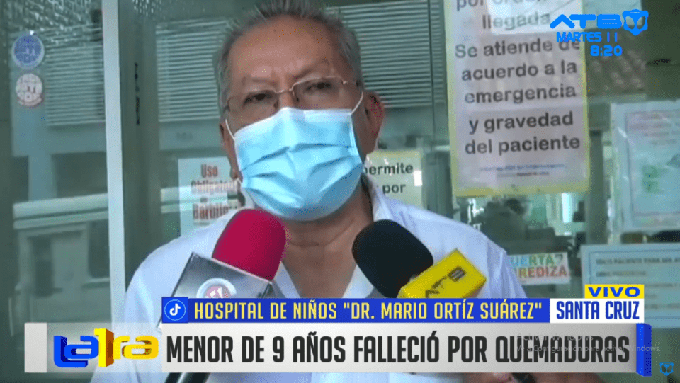 Santa Cruz, 11 de febrero 2025 (ATB Digital).- Una menor que había sufrido graves quemaduras tras una explosión en su hogar en el municipio de El Torno, perdió la vida en el Hospital de Niños “Dr. Mario Ortiz Suárez” de la ciudad de Santa Cruz. La pequeña tenía el 95% de su cuerpo afectado por las quemaduras y finalmente no logró sobrevivir a las heridas, según informaron sus familiares.