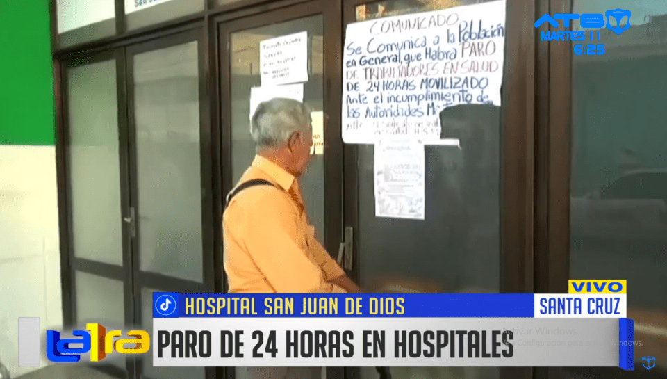Santa Cruz, 11 de febrero 2025 (ATB Digital).- El departamento de Santa Cruz enfrenta nuevamente un paro médico, esta vez de 24 horas, debido al incumplimiento de los acuerdos previamente firmados entre los galenos y las autoridades municipales y departamentales. Los médicos, que exigen el cumplimiento de los compromisos, decidieron implementar esta medida como forma de protesta. Por su parte, los pacientes expresaron su preocupación ante la situación y solicitaron a las autoridades que tomen las acciones necesarias para resolver el conflicto con los profesionales de la salud y así reanudar la atención médica.