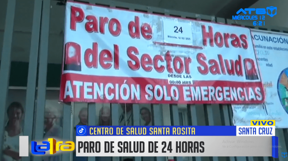 Santa Cruz, 12 de febrero 2025 (ATB Digital).- Por segundo día consecutivo, los médicos de la capital cruceña mantienen un paro de 24 horas en reclamo por el incumplimiento en el pago de sus sueldos y la falta de contratación de personal para mejorar la atención en los hospitales. En puertas del Hospital Santa Rosita, los galenos instalaron un letrero informando sobre la medida, como forma de protesta. Los pacientes que llegaron al centro médico manifestaron su molestia debido a la escasa atención recibida durante este paro.
