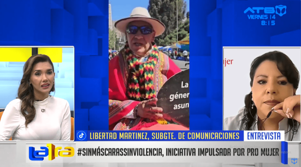 La Paz, 14 de febrero 2025 (ATB Digital).- Subgerente de Comunicaciones de Pro Mujer, Libertad Martínez, destacó que, a pesar de los avances legislativos en Bolivia, los feminicidios continúan debido a estereotipos de género arraigados. Ante esta situación, junto con el Ministerio de Culturas y ONU Mujeres, se lanza la campaña “Sin Máscaras, Sin Violencia” para brindar apoyo a víctimas de violencia.