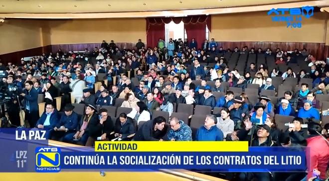 La Paz, 14 de feb 2025 (ATB Digital).- El proceso de socialización de los contratos de industrialización del litio continúa y llegará a distintos sectores sociales. El objetivo es despejar dudas y generar consenso antes de su discusión en la Asamblea Legislativa. Las autoridades aseguran que se priorizará la transparencia en la difusión de la información.