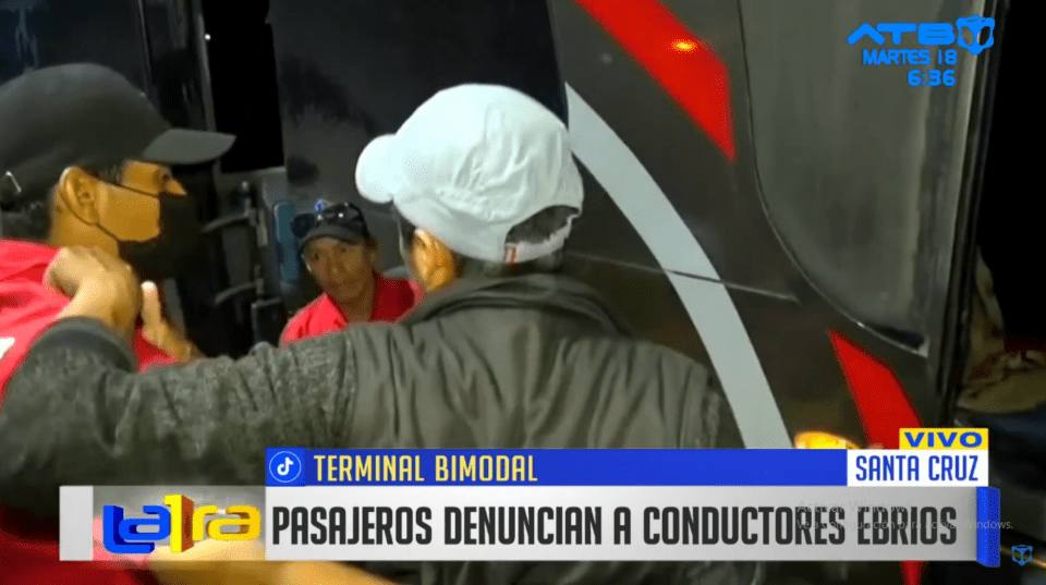 Santa Cruz, 18 de febrero 2025 (ATB Digital).- Pasajeros de un bus que realizaba el recorrido de Sucre a Santa Cruz denunciaron que el conductor se encontraba en estado de ebriedad. Según los testigos, el motorizado circulaba de manera irregular, llegando incluso a chocar contra varios árboles a lo largo del trayecto. El conductor fue bajado del vehículo y detenido por el personal de la Terminal Bimodal de Santa Cruz, donde se encontraba en evidente estado de ebriedad.