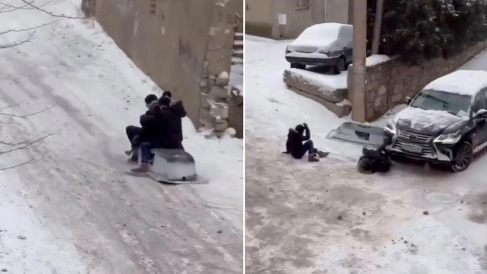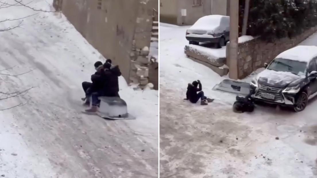 Mundo, 04 de mar 2025 (ATB Digital).– Un grupo de niños de la república rusa de Daguestán decidió disfrutar de una nevada y, al ser este un fenómeno que rara vez se presenta en la zona, en lugar de un trineo, utilizaron una bañera de hierro fundido para deslizarse por una calle. Sin embargo, la diversión les duró poco, ya que al final del trayecto terminaron estrellándose contra un auto Lexus. Aparentemente, ocasionaron daños al vehículo, pero su propietario no denunció el hecho ante la Policía.