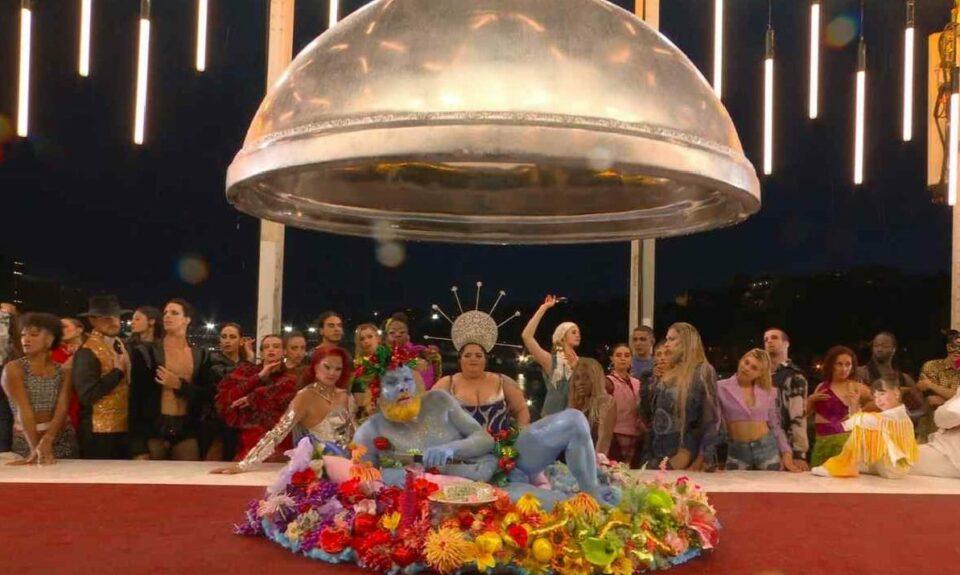 La escena, que representaba a un grupo sentado alrededor de una mesa, entre ellos varias drag queens, fue interpretado por algunos como una parodia burlesca de la Última Cena de Jesús con sus apóstoles.
