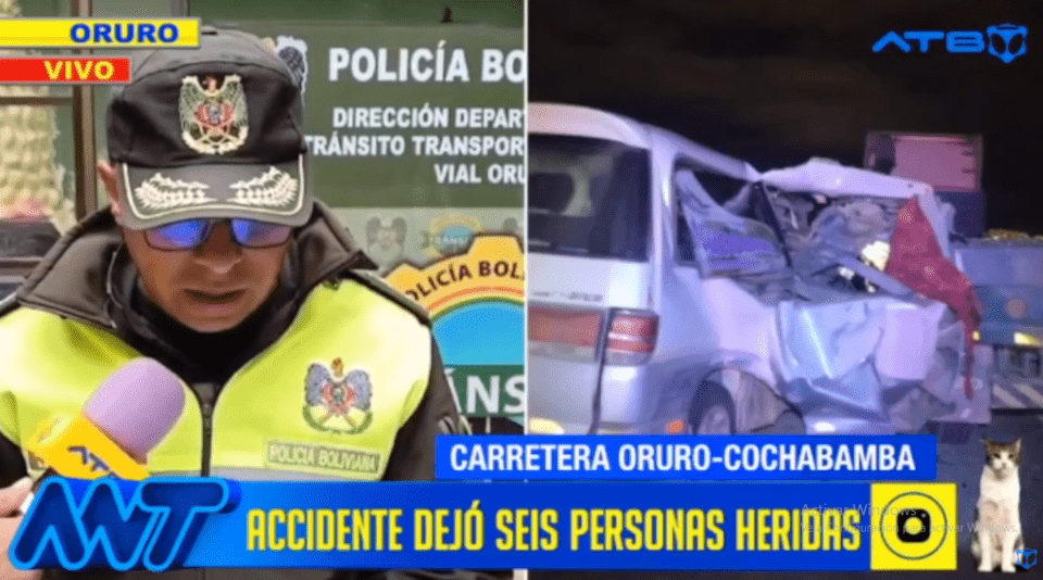 Oruro, 7 de marzo 2025 (ATB Digital).- Ayer, en la carretera entre Oruro y Cochabamba, se registró un accidente de tránsito que involucró una colisión entre una vagoneta y un tractocamión. Rommel Valdez, jefe de la división de accidentes de tránsito, informó que el incidente dejó seis personas heridas. Valdez explicó que la vagoneta realizaba su recorrido habitual y, a la altura de Capachos, fue sorprendida por el vehículo pesado, que regresaba a la vía.