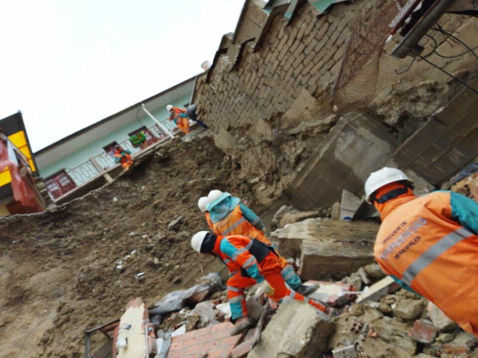 “La caída del muro se debe a la saturación del suelo por acumulación de agua detrás del muro. Existe un alcantarillado mixto al interior del patio que se presume es el causante de la saturación”, añadió el funcionario.