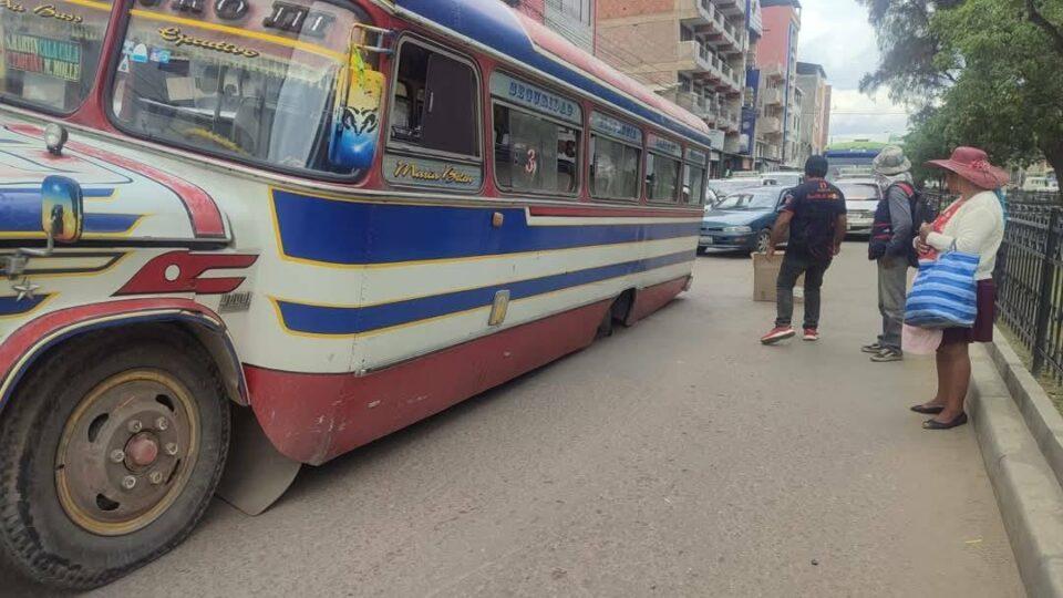 Un micro queda atrapado tras hundirse una vía del centro de Cochabamba