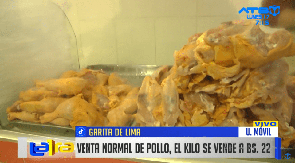La Paz, 17 de marzo 2025 (ATB Digital).- En la zona Garita de Lima, el precio de la carne de pollo se comercializa a 21 bolivianos por kilo. Los vendedores del producto indicaron que, presuntamente, el aumento en el precio se debe a la situación de los caminos, que se vieron afectados en los días anteriores. Además, los comerciantes invitaron a la población a pasar por los puntos de venta para adquirir el producto.