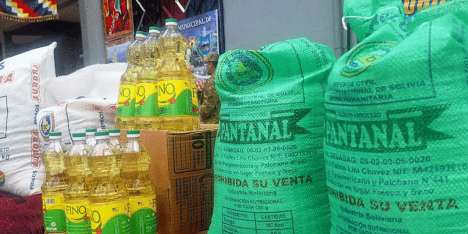 “Son 93,98 toneladas de ayuda humanitaria que tiene una inversión de 690.840 bolivianos. (…). No están solos, ustedes saben que a las dos horas que sucede el evento, nos estamos comunicando con sus alcaldes para hacer las primeras evaluaciones, para dar algunas instrucciones, recomendaciones y para atender algunos de sus pedidos”, dijo la autoridad durante el acto de entrega.