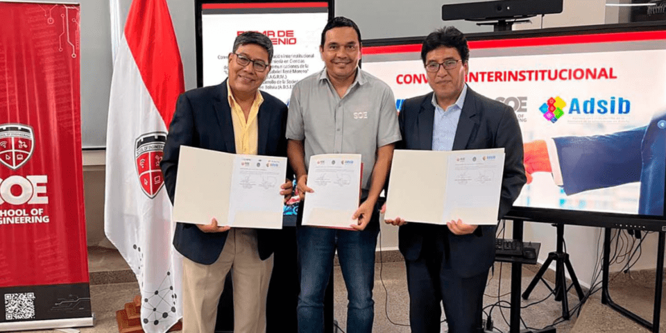La Agencia para el desarrollo de la Sociedad de la Información en Bolivia (ADSIB), entidad bajo tuición de la Vicepresidencia del Estado, firmó este martes un convenio de Cooperación Interinstitucional con la Facultad de Ingeniería en Ciencias de la Computación y Telecomunicaciones (FICCT) de la Universidad Gabriel René Moreno (UAGRM).
