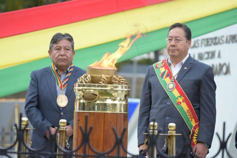 El presidente Luis Arce y el vicepresidente David Choquehuanca encabezan la celebración, de la que también participan el gobernador De La Paz, Santos Quispe; el alcalde de La Paz, Iván Arias; el presidente de la Cámara de Diputados, Omar Yujra, ministros de Estado y otras autoridades.