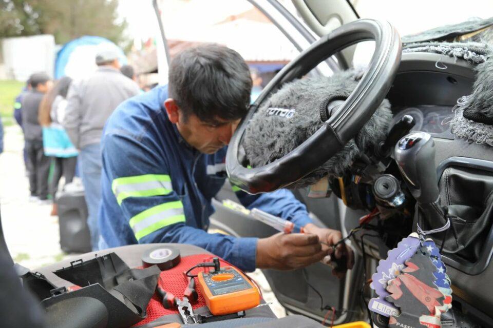 El proceso de instalación del sistema de rastreo empezó hace un par de semanas en La Paz. Vehículos del transporte público pasan por el proceso como parte del acuerdo con la Alcaldía para evitar el “trameaje”.