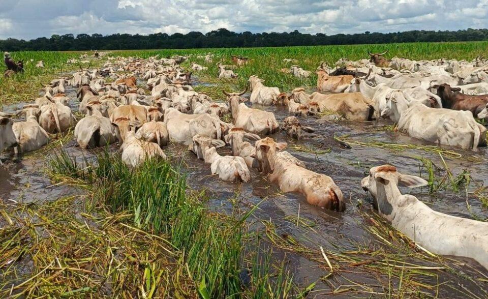 Según reportaron medios locales y nacionales, la emergencia puso en riesgo a aproximadamente 2.000 cabezas de ganado, ya que el agua acumulada no disminuyó, dificultando el traslado de los animales a zonas seguras.
