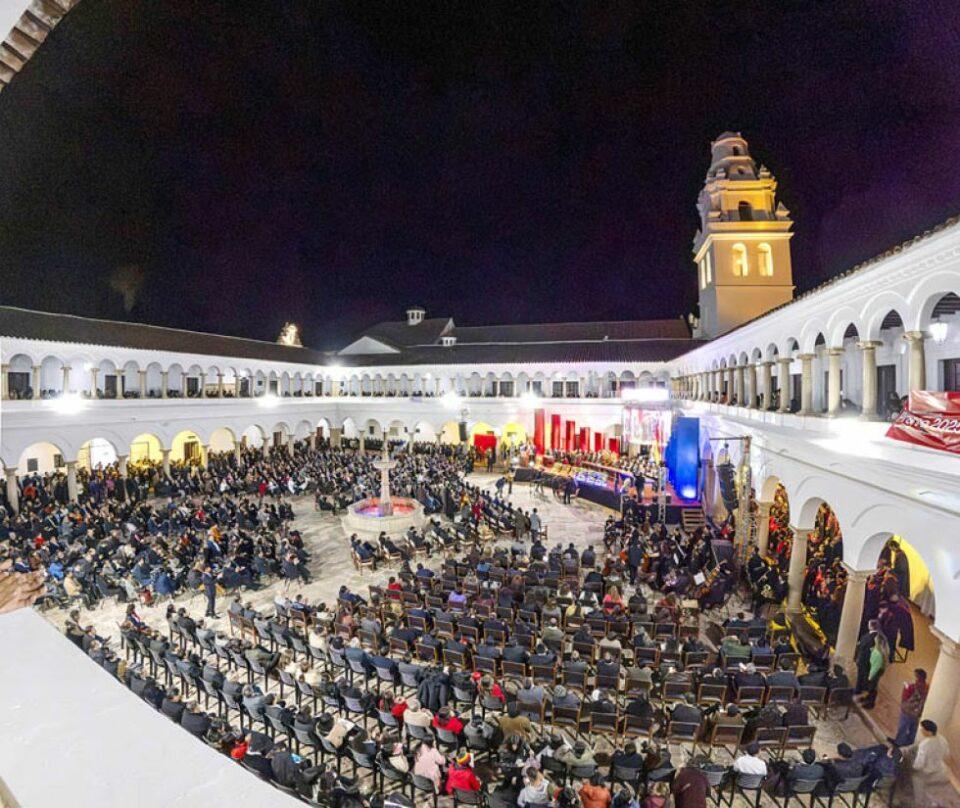 El evento, celebrado en el patio histórico de la Facultad de Derecho, destacó el aporte de la USFX en la formación de generaciones de líderes y profesionales comprometidos con el desarrollo del país, así como su rol como bastión del pensamiento libre, la justicia y la transformación social.