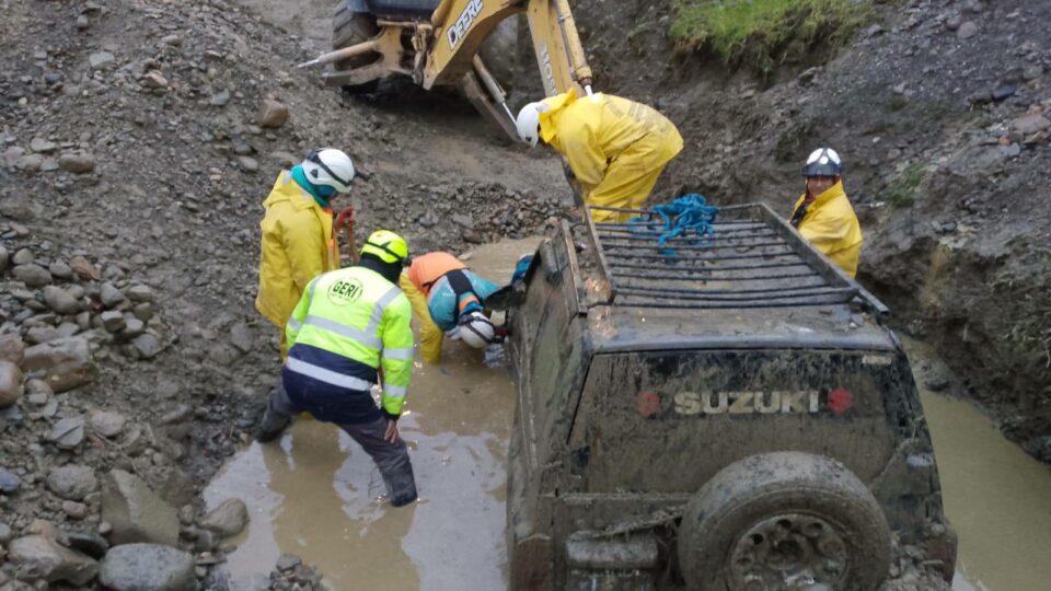 Respecto de los vehículos que quedaron en medio del lodo, a uno lo recuperaron y aún resta el otro.