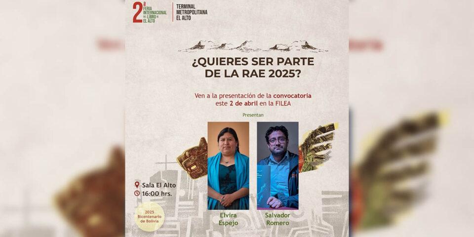 El miércoles 2 de abril, como parte de la agenda de la Feria Internacional del Libro de El Alto (Filea), el Museo Nacional de Etnografía y Folklore (Musef), dependiente de la Fundación Cultural del Banco Central de Bolivia (FC-BCB), anunciará la convocatoria para la Reunión Anual de Etnología 2025 (RAE 2025). Este evento se destaca como uno de los más importantes en el ámbito académico nacional e internacional.