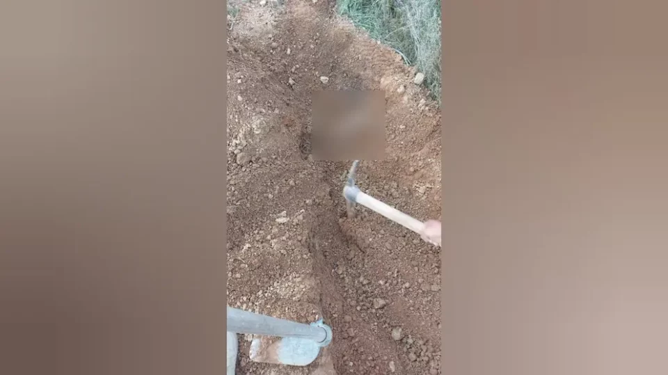 Según el testimonio de un vecino, el descubrimiento se produjo debido a los fuertes olores fétidos y la presencia inusual de moscas en el área. Al remover la tierra, liberaron parte del cuerpo.