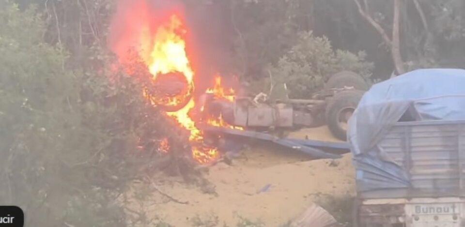 Santa Cruz: Camión con soya se vuelca y se incendia, dejando dos fallecidos