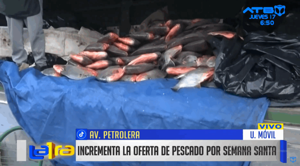Cochabamba 17 de abril 2025 (ATB Digital).- En el sector de El Arco, ubicado en la avenida Petrolera de la ciudad de Cochabamba, productores de pescado provenientes del Trópico llegaron para ofrecer una amplia variedad de productos, muy requeridos durante la celebración de Semana Santa. Entre las especies disponibles se encuentran el sábalo, pacú y tambaquí, pescados que forman parte de las tradiciones gastronómicas de la temporada.