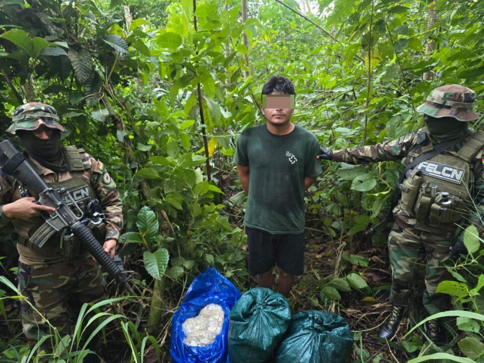 El operativo se desarrolló en inmediaciones del sindicato Villa Progreso Senda II, tras recibir información sobre una presunta transacción de narcotráfico. Como resultado, fue aprehendido Exson V.S., quien se encontraba en posesión del cargamento de droga.