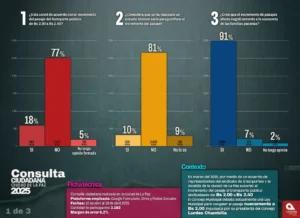 El sondeo, realizado del 10 al 18 de abril de 2025 a la ciudadanía paceña, mostró un masivo rechazo al incremento en el pasaje del transporte pública de Bs 2,00 a Bs 2,40.