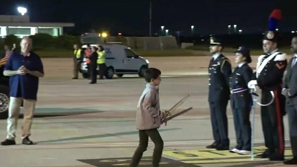Mundo, 21 de abr 2025 (ATB Digital) .-  Vivek y Ewan, los hijos del vicepresidente de EE.UU., J.D. Vance, fueron captados divirtiéndose con espadas de juguetes en una pista del aeropuerto italiano de Ciampino, en Roma. El mayor, Ewan, de 7 años, mostró gran habilidad empuñando dos espadas y moviéndolas como si fuese un verdadero gladiador mientras subía al Air Force Two, en compañía de sus padres y rodeado de una comitiva. Vance y su familia ahora se dirigen a la India, donde llegarán este lunes en su primera visita oficial.