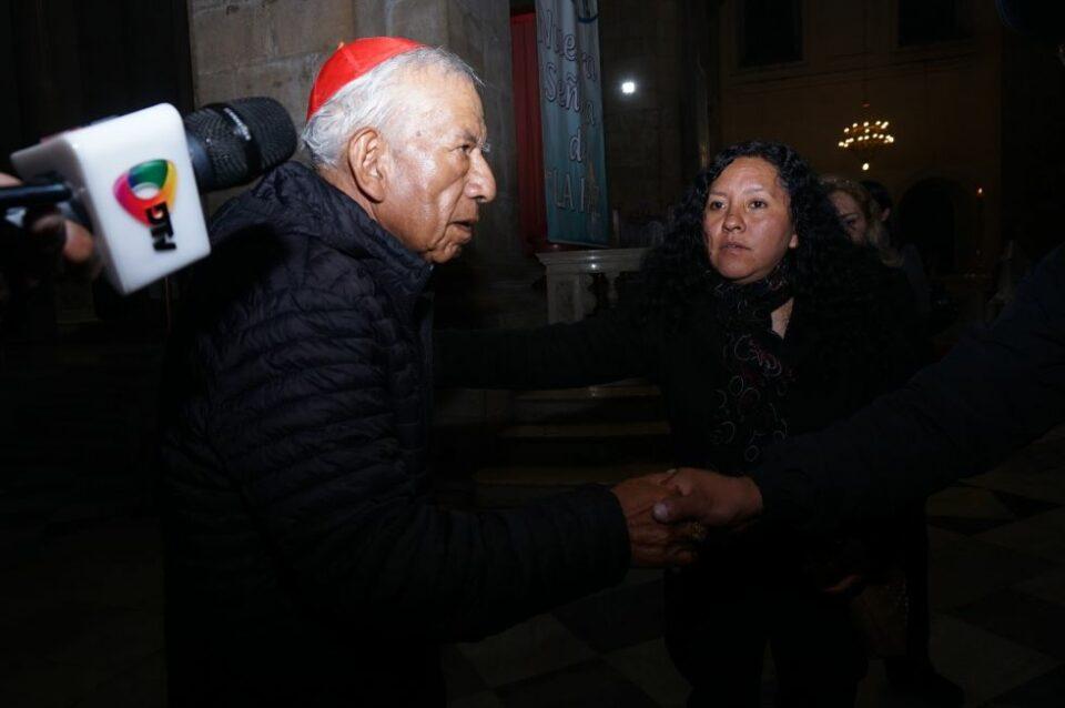 “Soy obispo, cardenal de Bolivia, todos los cardenales nos reunimos para elegir al nuevo Papa, al reemplazo del papa Francisco”, respondió ante la consulta de los medios en la catedral Metropolitana de La Paz.