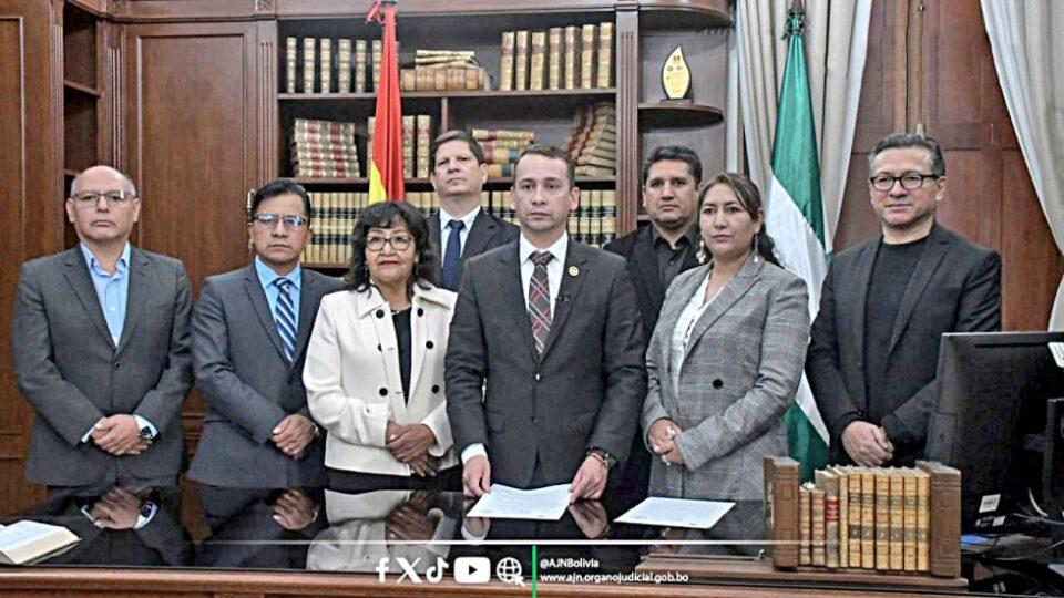 El presidente del TSJ, Romer Saucedo, acompañado de siete magistrados, excepto la decana Rosmery Ruiz, que participaba en un evento del Tribunal Agroambiental, grabó en un video el contenido del instructivo remitido a los jueces y vocales del país.