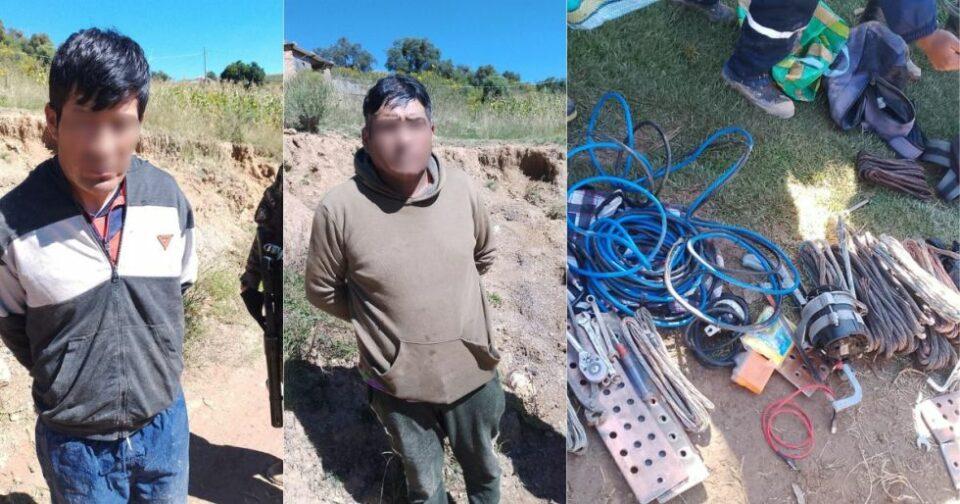 Chuquisaca, 25 de abr 2025 (ATB Digital) .- Pobladores de la comunidad de Piocera, en el municipio de Poroma (Chuquisaca), capturaron a dos hombres acusados de robar equipos de la empresa Entel, entre ellos antenas, cables y otros dispositivos. El hecho ocurrió la noche del jueves, cuando un grupo de antisociales desactivó las alarmas de una antena y sustrajo varios objetos tecnológicos de valor.