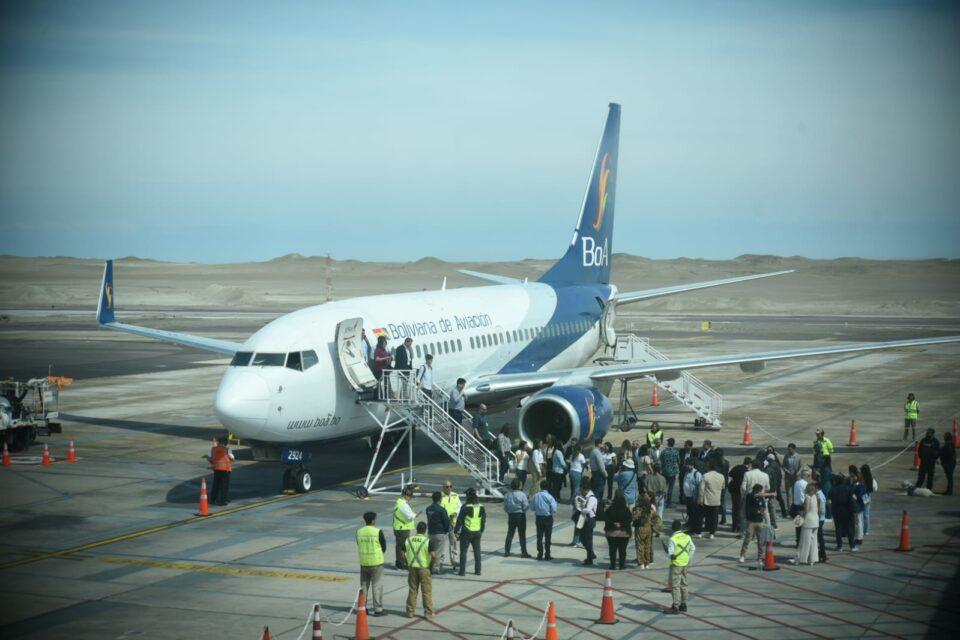 Bolivia, 26 de abril de 2025 (ATB Digital). – El Himno Nacional y la música y danza de la morenada retumbaron este sábado en Iquique, en la primera escala del vuelo inaugural de Boliviana de Aviación (BoA) a Chile que vinculará a ambos países con la mirada en el fortalecimiento del comercio y el turismo no solo vía aérea, sino también apostando por la integración caminera.