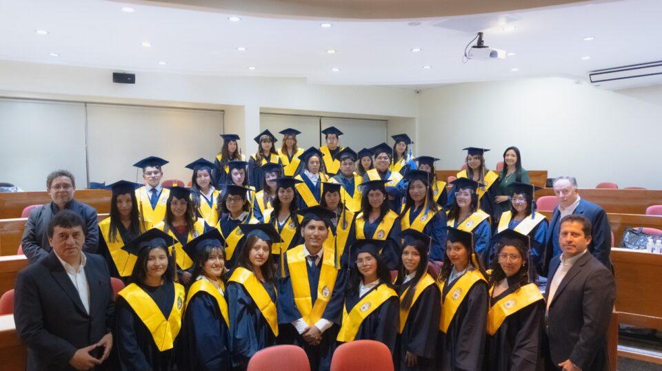 La Paz, 28 de abr 2025 (ATB Digital).- Con un llamado a fortalecer el compromiso social y la inversión en educación, la Fundación Mercantil Santa Cruz – “Puedes Creer” y la Escuela de La Producción y Competitividad (EPC) de la Universidad Católica Boliviana San Pablo presentaron a los 38 graduados de la 11va generación del Programa Becas, en un emotivo acto realizado el viernes 25 de abril en el Aula Magna de la ePC.