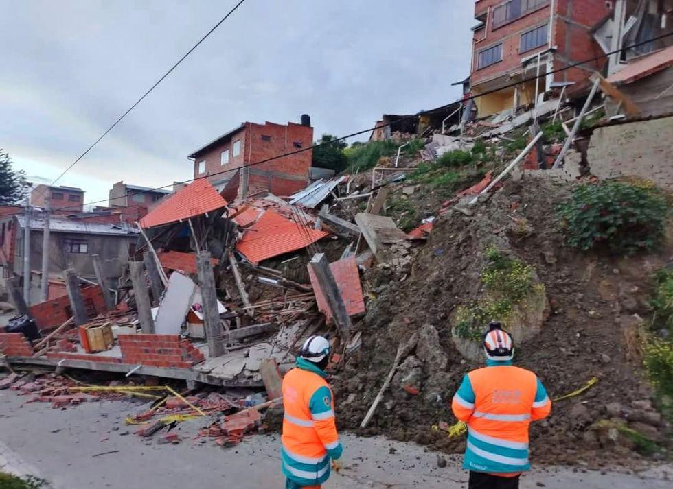 Las intensas lluvias registradas en los últimos días provocaron el colapso total de dos viviendas y el daño parcial de otras dos en la calle Corali de Bajo San Isidro, al sur de la ciudad de La Paz.