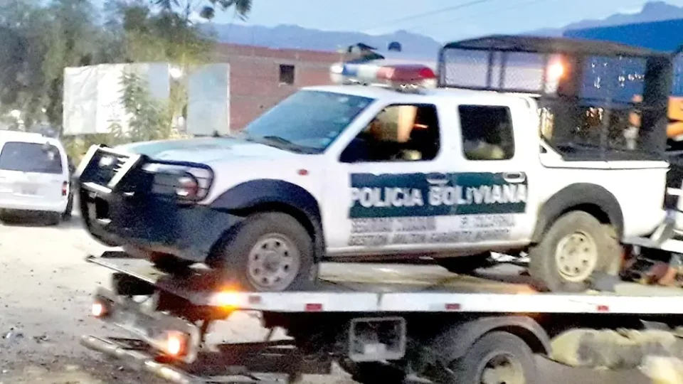En Colcapirhua, Cochabamba, un hombre robó una patrulla de la Fuerza Especial de Lucha Contra la Violencia (FELCV) y huyó con el vehículo. Al intentar cruzar un promontorio de tierra debido a un bloqueo en la avenida Blanco Galindo, impactó una motocicleta y fue detenido en el lugar.