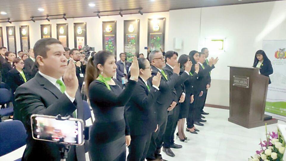 Entre los posesionados están los fiscales Luis Whaner Montaño y René Cáceres (Crimen Organizado), Marcela Terceros y Patricia Bohórquez (Derechos Humanos), Alejandra Rocha (Razón de Género), Sergio Fajardo (Vida y Personas), Mirtha Mejía (Anticorrupción), Jorge Algarañaz (Narcotráfico) y Cristián Miranda (Patrimoniales).