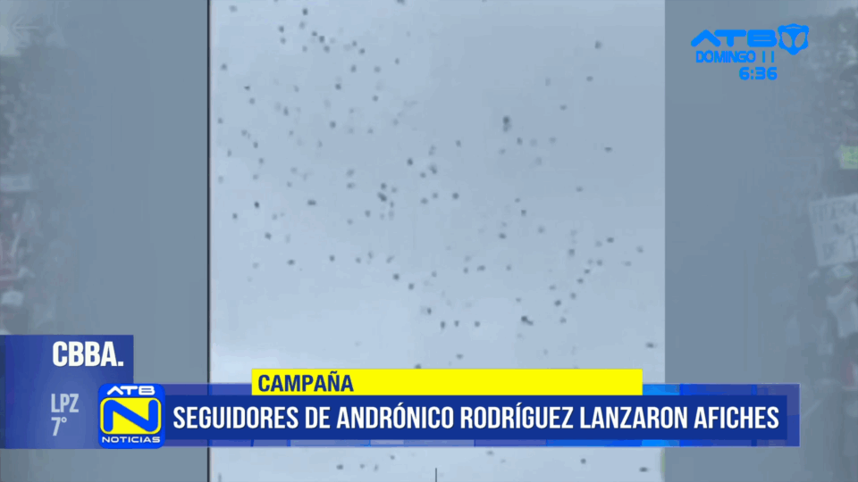Cochabamba, 11 de may 2025 (ATB Digital).- Durante el acto de proclamación del expresidente Evo Morales en el estadio Hugo Chávez de Chimoré, una avioneta sobrevoló el lugar y lanzó panfletos con la imagen del presidente del Senado, Andrónico Rodríguez, junto al lema “Andrónico presidente”.